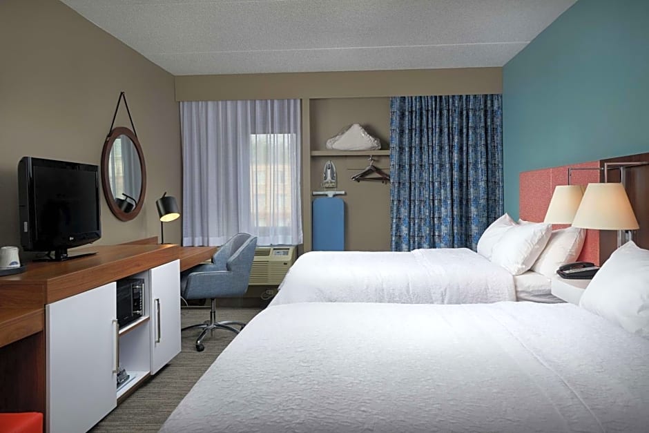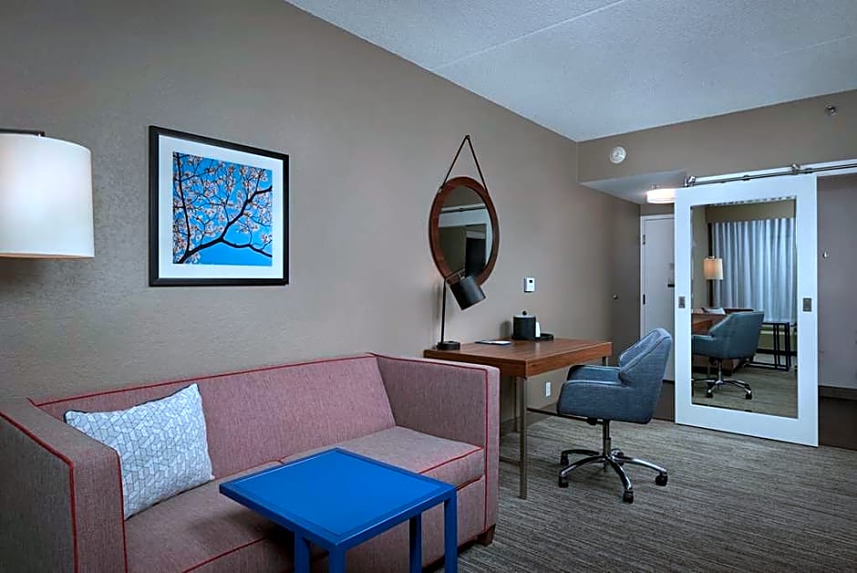 TV, sofa bed, free WiFi, work desk, coffeemaker Unwind in this welcoming, convenient room. Relax watching the TV or stay on top of business at the desk. Keep up-to-date with free WiFi. This room also has a coffeemaker. The bathroom includes a shower with a curved rod that allows for more space and light. This room has one king clean and fresh Hampton bed® and a sofa bed.